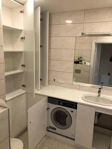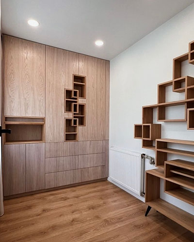 Projektuojame ir gaminame virtuvės, svetainės, prieškambario, miegamojo, vonios baldus, spintas su stumdomų durų sistemomis.