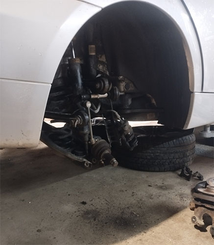 (šarnyrų keitimas, riebokšlių (sailenblokų) keitimas, amortizatorių keitimas, restauravimas, vairo traukės ir antgalių keitimas)