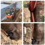 Įrengiame ir įvedame inžinerinius tinklus, dujotekius, vandentiekius, kanalizacijas, sausinimo ir drėkinimo drenažus, lietaus nuotekas, valymo įrenginius.