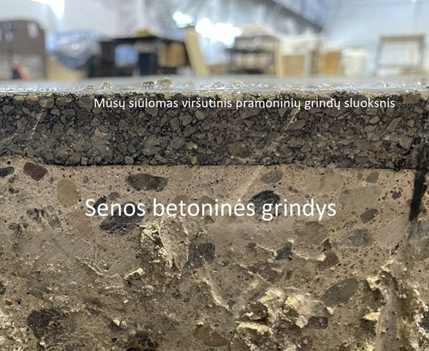 Pramoninių grindų įrengimas. Pramoninės grindys susideda iš specialiai sukurtos bituminio mišinio emulsijos su cementu, smėliu ir aukštos kokybės skalda. Bituminė emulsija yra be tirpiklių ir nekenksminga aplinkai, todėl įrenginėjant nėra nemalonių kvapų. Šios grindys tinka ne tik naujiems pastatams, bet ir renovacijai.