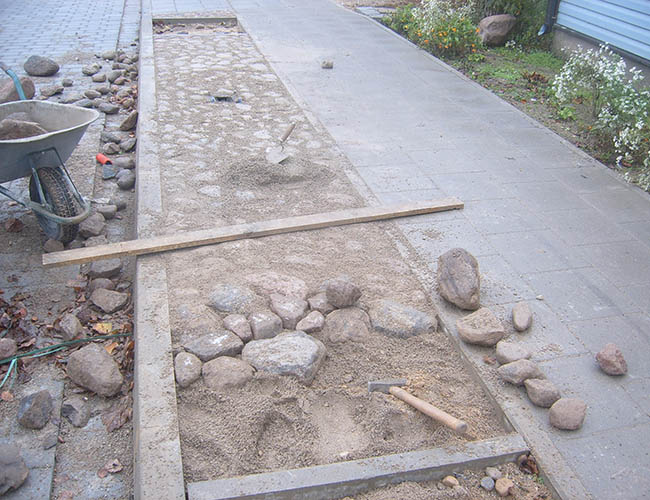 Pagrindų įrengimas, trinkelių klojimas