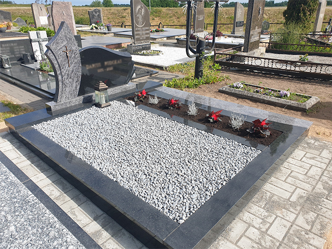 Senų kapaviečių tvarkymas, jų demontažas, senų paminklų restauracija. Galime atlikti originalius ir sudėtingus gaminius. Teikiame kapų įrengimo paslaugas: naujų pamatų liejimas, bortelių, paminklų, plokščių gamyba, skaldos išpylimas, dedame trinkeles aplink kapą. Dengiame kapavietę akmens plokštėmis arba akmens masės plytelėmis.