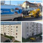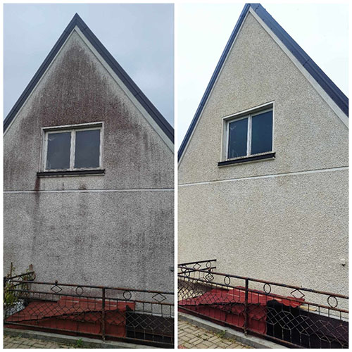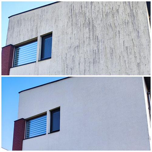 Plauname fasadus aukšto slėgio vandens srove, pašalindami purvą, pelėsį ir kitus nešvarumus;