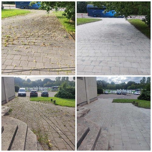 Efektyviai pašaliname purvą, samanas ir kitus nešvarumus nuo trinkelių;
